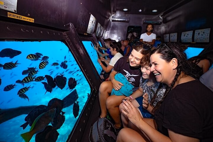 Immerse yourself in the fascinating underwater world of the Red Sea on a 2 hours trip from Hurghada by semi-submarine. The semi-submarine’s panoramic windows let you see marine life closer, making it perfect for all ages.