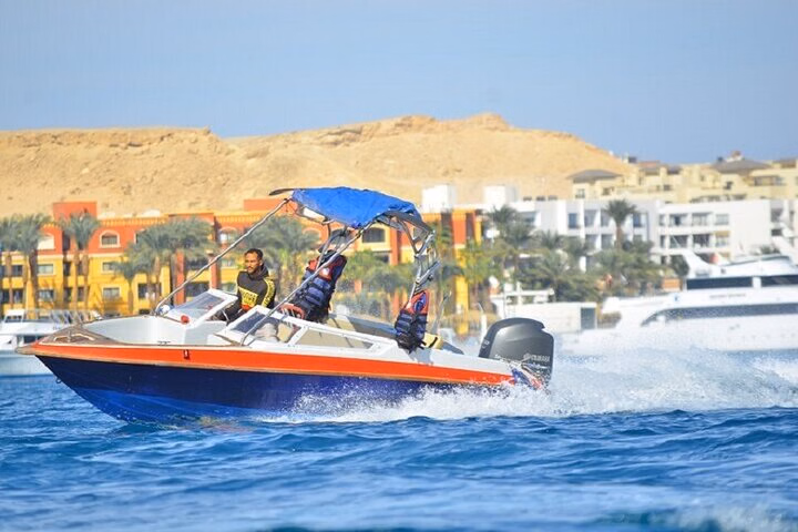 The adventure begins with a smooth transfer to the marina, where you’ll board a speedboat designed for an intimate and personal experience. Cruise to prime dolphin-watching locations in the Red Sea, where you’ll have the chance to interact with these majestic creatures in their natural habitat, making memories that last a lifetime.